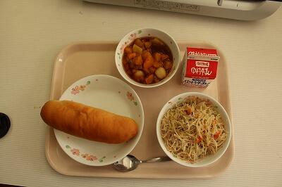 今日の給食は、コッペパン、ピーナッツクリーム、フレンチサラダ、ポークビーンズでした。Hさんは、「フレンチサラダがさっぱりしていて、ポークビーンズはまろやかな口当たりでした。大好物のピーナッツクリームがでておいしかったです。」と言っていました。