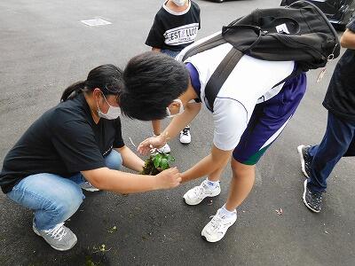 保護者と生徒が夏尾の自然を使って、癒やしの