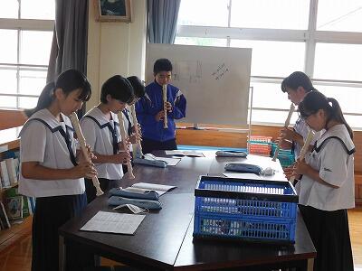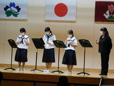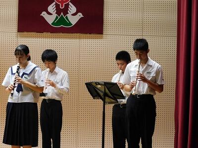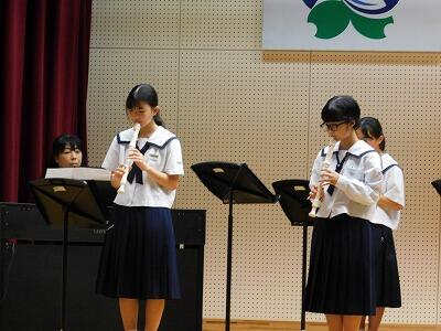 10月26日(火)に都城市総合文化ホールで都北小中学校音楽大会(中学校の部)が行われました。夏尾中は西岳中と合同でアルトリコーダーで「アメイジング・グレイス」の合奏と「君と歩こう」の合唱をしました。すばらしい合唱と合奏でした。西岳中との交流も進めていけると良いです。