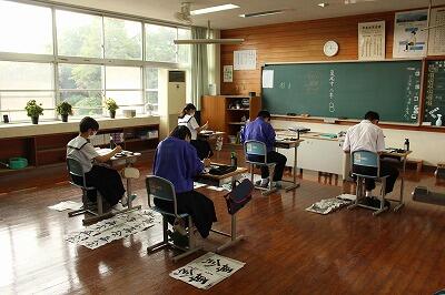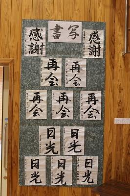 今日の2年生の書道の時間は学習発表会で展示する作品の仕上げをしました。「再会」という字を書きました。1年生は「日光」、3年生は「感謝」という字を書いています。学習発表会で体育館に展示する予定です。どれも力作揃いです。