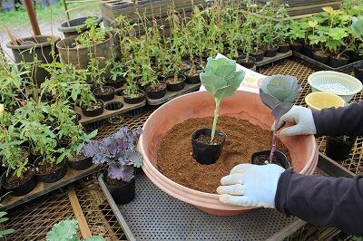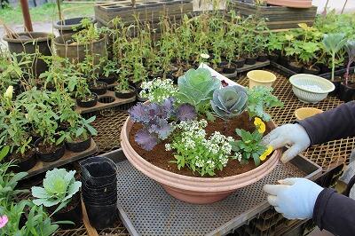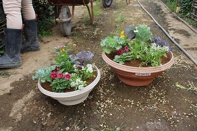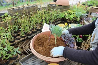 今日は11月に行う寄せ植えのために、寄せ植えの仕方の勉強に行きました。11月に生徒が作る寄せ植えは小学校の前の道路沿いに並べておく予定です。ボラの入れ方、培養土の入れ方、配置の仕方をうまく生徒に伝えられたらと思います。写真は八方美人植えです。