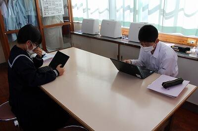 昨日は、中学校図書館サポーターのK先生が来校しました。今日は久しぶりにビブリオバトルをしました。今日の対戦は、2年生のAさんと3年生のYさんでした。さて、勝敗の行方はどちらに?