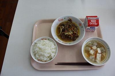 今日の給食は、ご飯、つみれ汁、宮崎牛のチャンチャン焼き、牛乳でした。宮崎牛という名前がつくのは、①黒毛和種、②宮崎県で生まれ育つ、③肉質が4等級5等級の条件があるようです。給食で宮崎牛が食べれられるなんて幸せです。