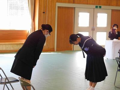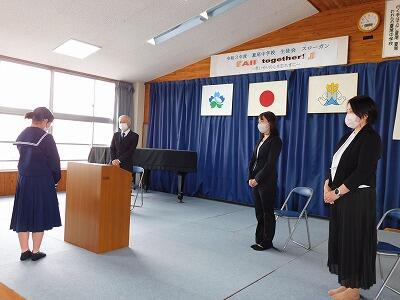 昨日は離任式がありました。令和4年の定期異動で小中兼務の職員を含め3名の先生方とお別れをしました。生徒は離任式に向けて愛情のこもった色紙等を準備して離任される先生方にお渡ししました。離任される先生方の新天地でのご活躍とご多幸を祈念いたします。