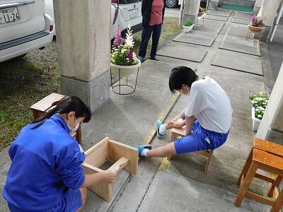 今日は3学期最後の技術の授業でした。H先生といっしょにたくさんの作品を作りました。椅子作りを一生懸命頑張っていました。