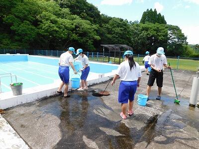 昨日は5,6校時に2回目のプール掃除でプールサイドを中心に掃除をしました。午後から気温も上がり暑い中のプール掃除でしたが、みんな一生懸命頑張っていました。