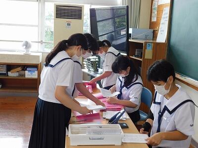 今日の生徒活動の時間は全校専門委員会でした。4、5月の反省と6、7月の取組と対策についての話合いを行いました。
