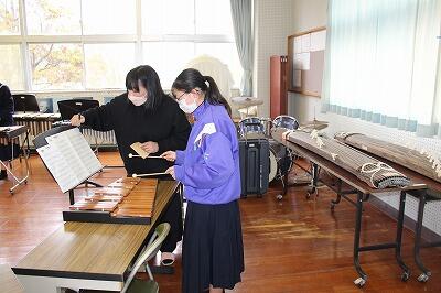 今日の2年生の音楽の授業は音楽発表会に向けての個別練習の時間でした。2年生は「夜に駆ける」をピアノ、鉄琴、木琴、キーボードで発表する予定です。みんな一生懸命練習していました。音楽発表会が楽しみです。