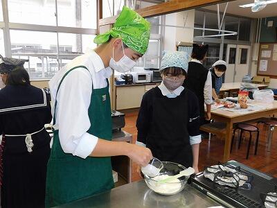 今日の3年生の家庭科は、中学校最後の調理実習でした。チョコチップクッキー、ミルクスコーン、チョコレートテリーヌを作りました。調理室から良い香りが職員室まで漂ってきました。きっと家でも家族にごちそうしてくれることでしょう。