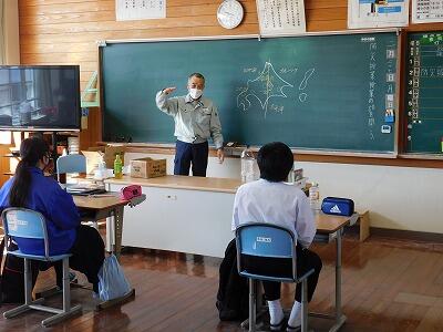 今日の5時間目に租税教室を実施しました。都城税務署から、SさんとKさんが来てくれました。講話とDVD視聴をとおして、税の種類や税の使われ方、税金の意義などについて知る貴重な機会となりました。