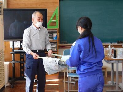 先週木曜日の総合的な学習の時間に1年生は、職場訪問のお礼状を、夏尾郵便局と夏尾市民センターに持っていきました。2年生は、学級担任のS先生が進路についての話をしました。