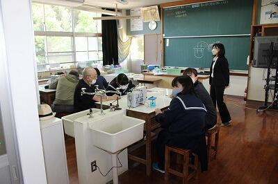 1年生は国語の授業で単元は「声を届けよう」、親子で課題について話し合う場面もありました。2年生は理科の授業で単元は「塩化銅を電気分解しよう」、親子で実験に取り組み、T先生の問いにYさんのお母さんが応える場面もありました。3年生は英語の授業で単元は「Three Interesting Facts about Languages 」、K先生と生徒の掛け合いや笑い声が聞こえるなど和やかな雰囲気で授業が進んでいました。
