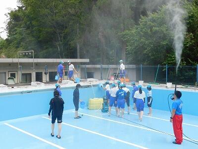 5月22日(月)に全校生徒でプール清掃を行いました。1年間使っていなかった汚れたプールをそれぞれの箇所に分かれて一生懸命清掃しました。朝から暑く、体調を崩す生徒がでるのではないかと心配しましたが、みな元気に楽しみながら行いプールはすっかりきれいになりました。6月上旬より水泳が始まります。楽しみですね。