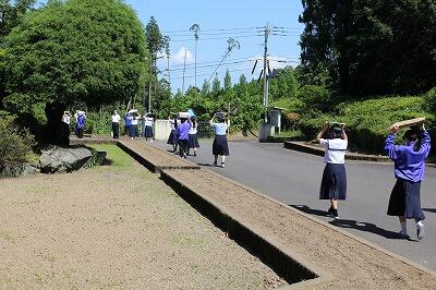 5月15日(月)春の全国交通安全運動に伴い、夏尾小学校の児童、地域の方々と共に小学校の正門前で交通安全啓発運動を行いました。生徒たちは、交通安全の横断幕やのぼり旗を持ち、通勤等で通行される運転者に大きな声であいさつを行いました。