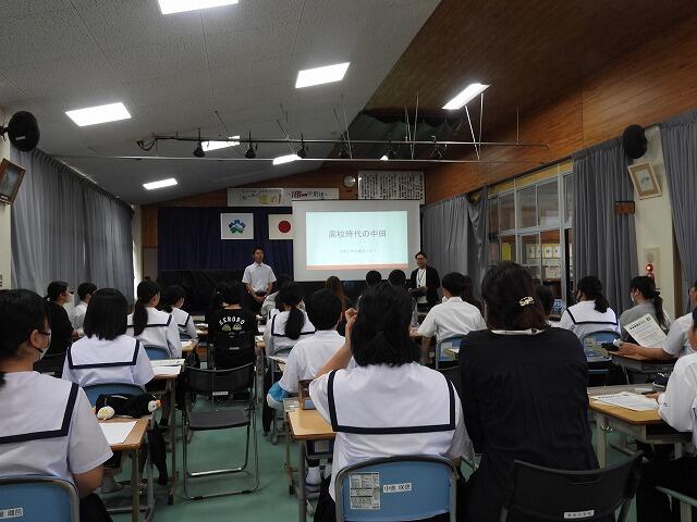 6月6日(金)都城市近隣の高等学校9校に来ていただき、高校説明会を実施しました。夏尾中は、3年生だけでなく、全校生徒が参加して説明を聞きます。1年生・2年生も真剣に話を聞き、それぞれが自分の進路について考える機会になりました。また、保護者の皆様も多数参加くださいました。