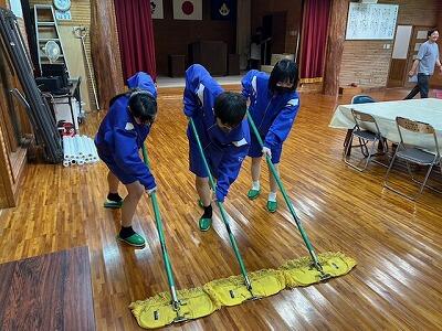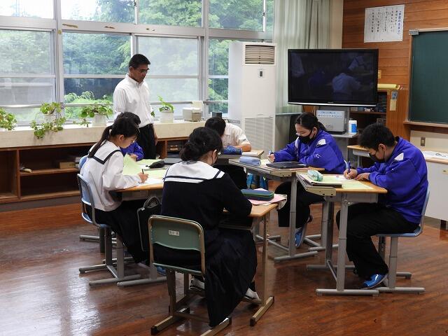 6月15日(日)3校時に道徳の授業参観を行いました。1年生は、保護者の方も参加して、生徒と一緒に考えてもらいました。どの学年も、自分の意見を積極的に述べ、活発な意見交換が行われていました。また、お昼ご飯は、各自が作ったお弁当を全校生徒集まって食べました。事前に学習したことを活かして、美味しそうなお弁当に仕上がっていました。午後は、クリーン作戦で公民館清掃を行いました。あいにくの雨で、夏尾町内にある特認校の看板などの作業は出来ませんでしたが、学校の環境整備を行いました。地域の方からも看板の下草を刈っていただくなどご協力をいただきました。
