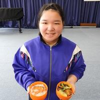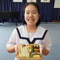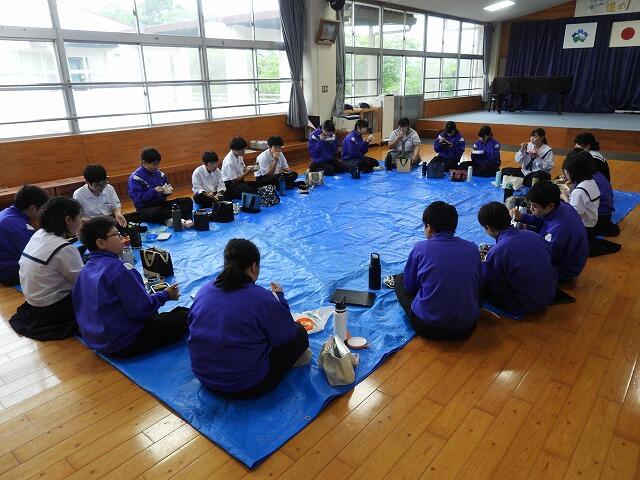 お昼は、自分で作ったお弁当を全校生徒円になって食べました。