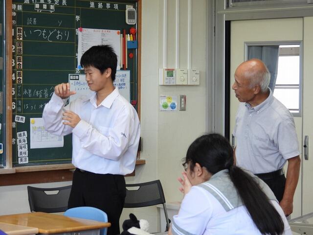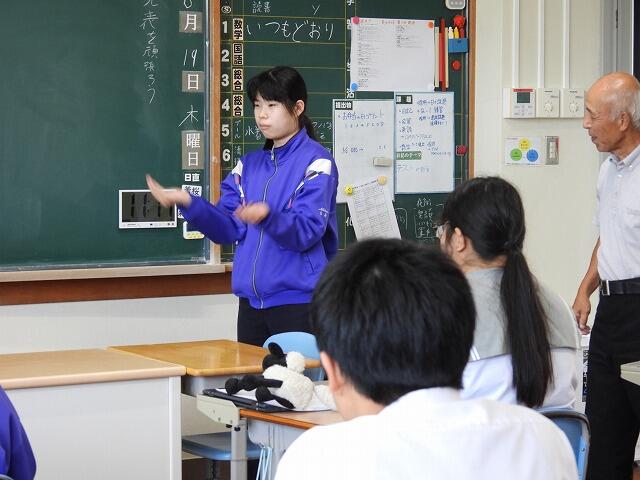 6月19日(木)3年生の総合的な学習の時間、講師をお招きして福祉講話(手話)を行いました。聴覚障がい当事者の方も参加していただき、聴覚障がい者の方とのコミュニケーションの取り方などを学びました。