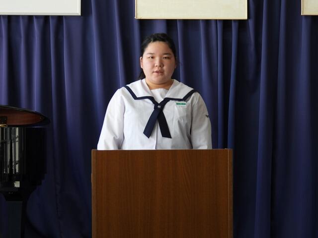 ◎1年間の反省を述べる代表生徒