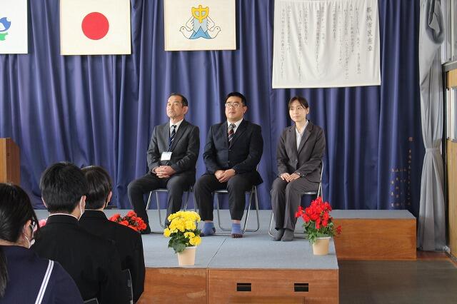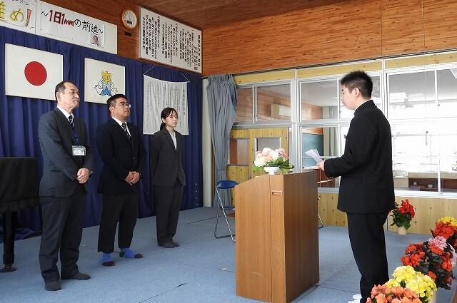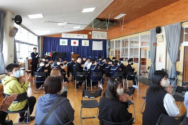 3月27日(金):うららかな春の日差しが降り注ぐ中、令和7年度の離任式を執り行いました。今年度は、校長先生をはじめ、3名の先生方が夏尾中から転勤されます。式には、卒業生を含む全校生徒24名全員が出席し、多くの保護者の皆様にも見守られながら、涙と笑顔が交差する温かなお別れのひとときとなりました。3名の先生方、ありがとうございました。