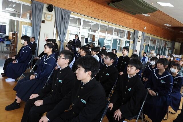 1月23日(金):西岳地区公民館において、『西岳中・夏尾中合同立志式』が挙行されました。式では、夏尾中2年生(8名)、西岳中2年生(2名)が登壇し、それぞれが選んだ「志の一文字」を色紙に掲げ、これからの人生に対する決意や、将来の目標を堂々と発表しました。一言一言に実感がこもった発表からは、この1年間の大きな成長が感じられ、参列した公民館長をはじめとする来賓の皆様、そして保護者の皆様からも温かい拍手が送られました。今日述べた決意を胸に、一歩ずつ着実に歩んでいくことを期待しています。ご多忙の中ご出席いただいた来賓の皆様、保護者の皆様、ありがとうございました。