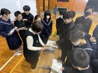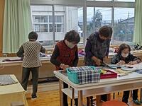 18日(月)の昼休みに、3年生8名が地域ボランティアの方々と一緒にクリスマスプレゼントのティッシュケースを作りました。そして、今日のクリスマスに、生徒会役員が地域の高齢者宅にプレゼントを届けました。