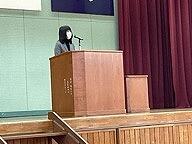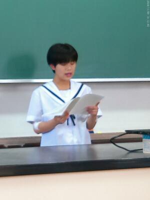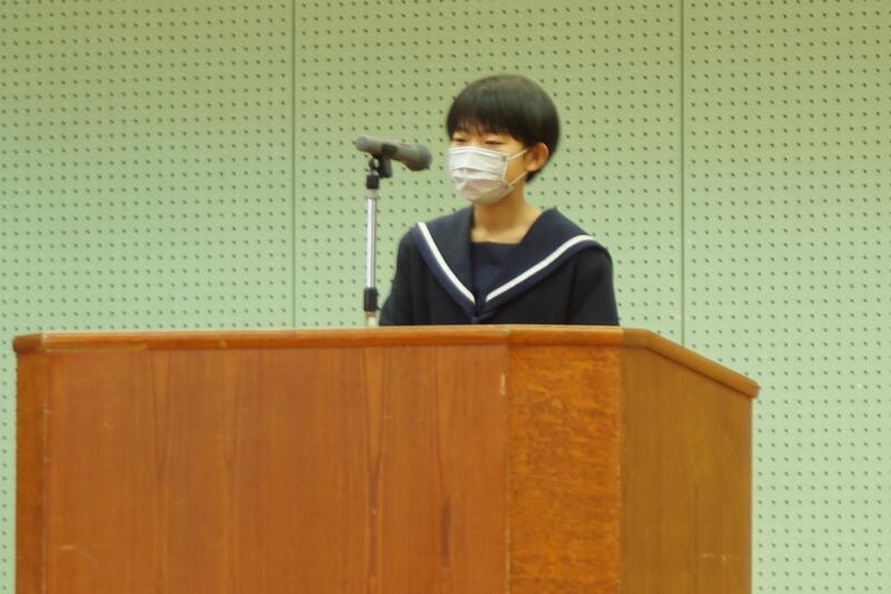 本校の2年生女子が優秀賞に選ばれ、代表で作文を発表しました。
