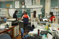 生徒達は大喜びでしたが、関係の無い生徒まで集まってきて大はしゃぎでした。そこで、わかなさんに絵のリクエストをすると、ひとり1枚ずついただけることになりました。絵ができあがるまでの間、校長室で楽しい時間を過ごしていました。