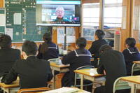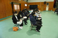 12月に1年生と6年生のリモート交流を行い、学校行事や生徒会活動、部活動紹介は実施したため、今回は教育課程や生活面での話、制服採寸が中心でした。