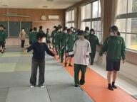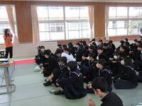 1月12日(金)に避難訓練を実施しました。今回は単に地震発生から運動場に避難する訓練ではなく、実際にあった地震被害から、起こりうる事態を想定して、今までの訓練との違いを生徒に理解させ、「災害発生時にどうしたらよいか」を考えさせる訓練を行いました。余震が何度か起きたり、停電していて放送設備が使えなかったり、けが人が出ることも想定しながらの訓練でした。