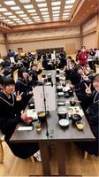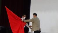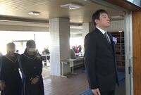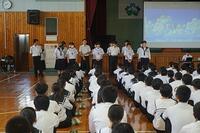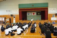 引率の先生と一緒に堂々と校歌を披露することができ、観客の方々から大きな拍手をいただきました。終了後、生徒達は都城市教育長から直接お言葉をいただきました。