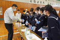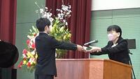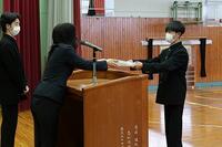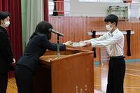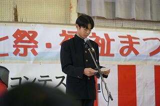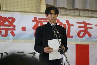 代表生徒が、「中学1年のときから様々な地域の行事に参加し、協力させていただいて、ありがとうございました。これを励みにこれからも頑張っていきます。」と挨拶しました。
