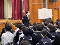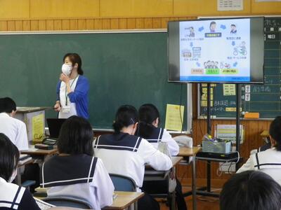 2日(金)に2年生が、宮崎か母ちゃっ子くらぶの助産師 の方を講師に迎え、命に関する講話を聞きました。