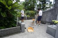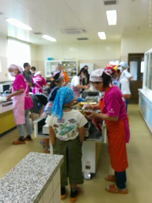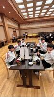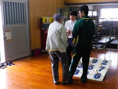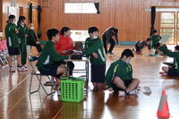 施設を訪れたときは、既に準備ができあがっており、4人は静かに小学生を待っていました。話を聞くと、テント立てなどをしたとのことでした。施設の方々からは「元気な生徒さん達ですね」と言っていただきました。