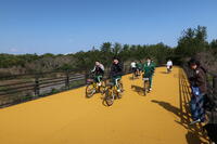 3年生は8日(金)、青島少年自然の家へ郊外学習に出かけました。まず着いたら自転車を借りて、青島までサイクリング。とてもいい天気で潮風にあたりながらのサイクリングでした。途中、チェックポイントにてクイズを出していきます。青島に着いたら、浜辺で水遊びをしたり、鬼の洗濯岩で貝や蟹を取って遊んだり、とても楽しそうでした。折り返し地点での青島神社ではお参りとおみくじ(大吉から大凶まで)を引き、青島少年自然の家に向けて、再びサイクリング。向かい風で、なかなか進みませんでした。最後にクイズの答え合わせえをしてゴールです。皆さん、時間通りに到着しました。午後は、お弁当を海岸で食べて、砂の造形を行いました。どの班も素晴らし出来映えでした。最後に海岸の美化活動を行い、きれいにして帰りました。とても思い出に残る1日でした。