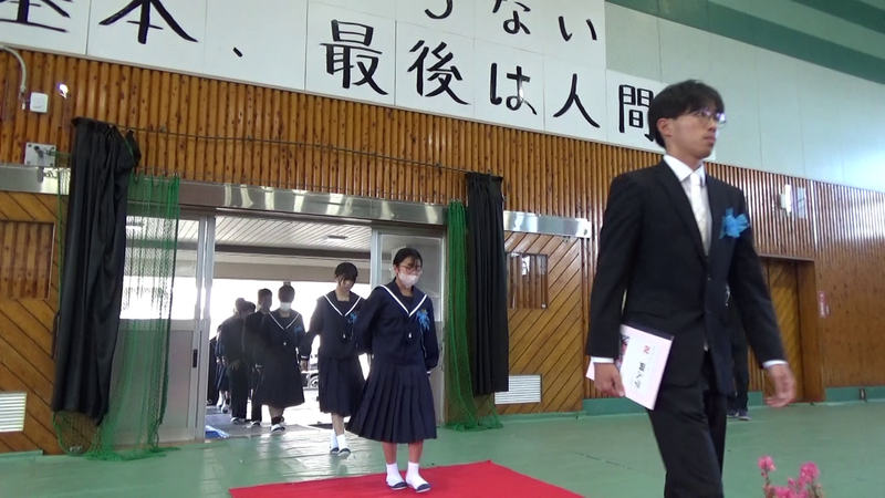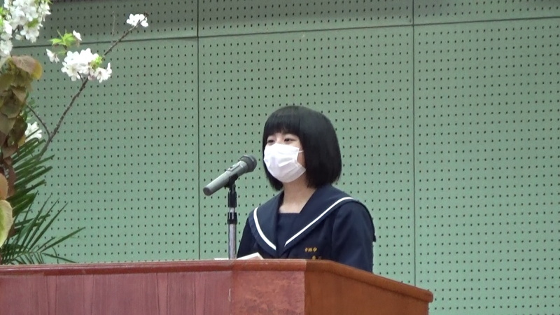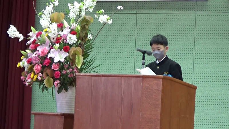 卒業生答辞では「コロナ禍で様々な制限を余儀なくされましたが、仲間と共に多くの学校行事を経験することができました。中郷中で過ごした日々は、たくさんの希望と喜びであふれていました。」「これから先、大きな壁にぶつかったとしても、この中郷中学校で学び、培ってきたことを糧に、私たちは何度でも前を向いて歩み続けていきます。今まで見守ってくださった先生方、保護者の皆様、そして共に過ごしてきた仲間に心から感謝して、答辞とさせていただきます。」と卒業生の思いを述べてもらいました。