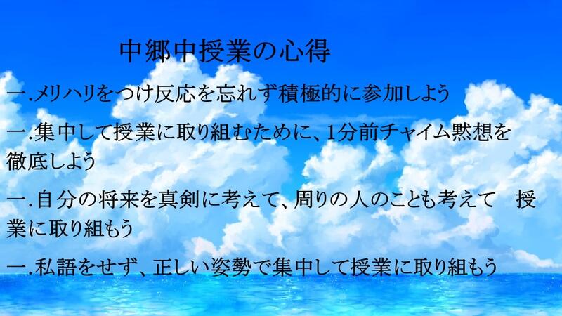 生徒のみなさんが、楽しく充実した冬休みを過ごし、3学期に元気に登校してくれることを楽しみにしています。