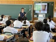 夏休み期間で、知覧を訪れたり、戦争に関わる多くの情報を収集されたりしたK先生が、戦争や平和、命の尊さについて深く考えてほしいと願い、2年生を対象に学年道徳の授業を行いました。
