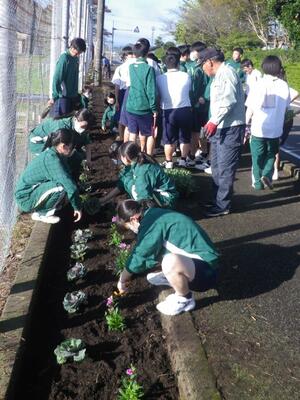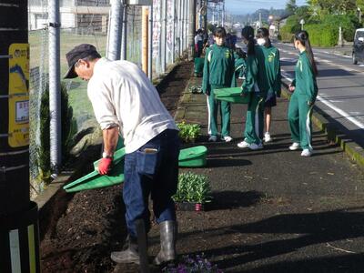 生徒の代表が社会福祉協議会主催のボランティアに参加しています。