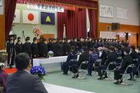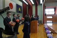 異動となる教職員の最後に言葉に涙を拭う生徒の姿も見られました。一つ一つの言葉が心に刻まれたようです。生徒を代表して生徒会長が心のこもった感謝の気持ちを伝え、生徒が花束を渡しました。