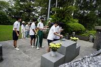 忠霊塔周辺の清掃の後、お線香をお供えし黙祷を行いました。また、中郷地区忠霊塔奉賛会の方より、忠霊塔、世界平和についてお話をいただきました。