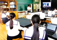 生徒はタブレットPCを使って、作成した短歌をイラストや写真を使って表現していました。提出された作品を最後にみんなで鑑賞しました。