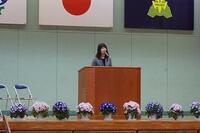 異動となる教職員の最後に言葉に涙を拭う生徒の姿も見られました。一つ一つの言葉が心に刻まれたようです。生徒を代表して生徒会長が心のこもった感謝の気持ちを伝え、生徒が花束を渡しました。