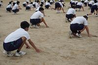 3年生は元気のよいかけ声で整列したあと、徒走のスターティングの練習をしていました。