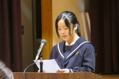 本校の代表として、1年生のYKさんは、「私の心のワクチン」と題して発表しました。友人から受けた親切を「心を守るワクチン」に例え、自分を支えてくれた優しさを今度は誰かに届けたいという、誠実な想いを語りました。そのじんわりと温かなメッセージは、聴いていた人の心に響きました。素敵な発表でした。