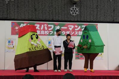 また、ステージ上では本校の学校紹介に加え、「かねみん」と「かねまる」を披露する貴重な機会もいただき、本校の魅力を地域の方々に広く発信することができました。