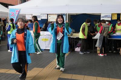 ボランティアに参加した生徒たちは、各地区のブースでお客さんの呼び込みや運営のお手伝いに奔走。その一生懸命な姿に、地域の皆様からお褒めの言葉をいただきました。