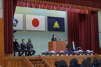 異動となる教職員の最後に言葉に涙を拭う生徒の姿も見られました。一つ一つの言葉が心に刻まれたようです。生徒を代表して生徒会長が心のこもった感謝の気持ちを伝え、生徒が花束を渡しました。