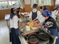 先日、1年生が芋掘りをしましたが、その芋を使って、郷土料理のがねや豚汁を作りました。
