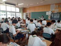 7月14日(金)に、3年生が福祉体験学習を行いました。社会福祉協議会の方や地域の方々に来ていただいて、車いす体験やアイマスク体験をしたり、福祉に関する講話を聴いたりして、障がいや高齢に伴う心身の変化、またその生活について考えました。